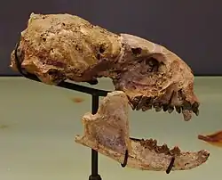 Finds range from the mid-latitudes of Europe and North America, dated from the Oligocene/Miocene boundary and surviving through to the end of the Miocene.[5][6] It has been interpreted by several researchers as a basal, non-marine ancestor of seals and sea lions, suggesting a freshwater phase in the evolutionary transition of pinnipeds from land to sea; geochemical analysis supports this hypothesis, finding P. valletoni to have been a freshwater dweller.[7] If Potamotherium was indeed a pinniped instead of a mustelid, its relatives were possibly early bears (whose ancestors at the time were small and generally weasel-like).[2]