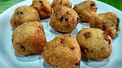 India | A type of savory fritter. This snack food can also be made with lentil, dal, or gram flour. |