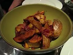 | Dum aloo | Indian subcontinent | Potatoes, usually smaller ones, are first deep fried, then cooked slowly at low flame in a gravy with spices.[8] | |
