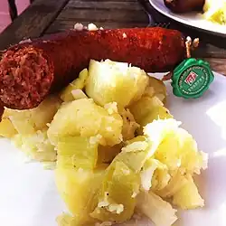 Silesia | A type of potato salad made with carrots, peas, ham, various sausages, pickled fish, boiled eggs, with olive oil or mayonnaise. |