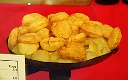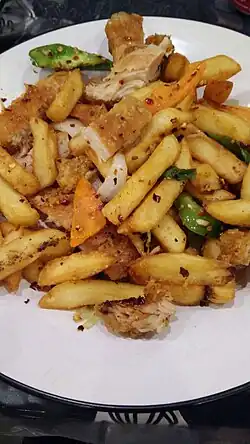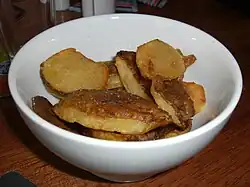 | Farali potatoes | India | Deep fried potato, prepared with green chili peppers and may be eaten during fasting. | |