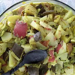 Indian subcontinent | A dish of cauliflower, potato and turmeric. It is sometimes prepared with additional spices. |