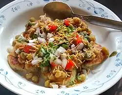 Kachchh, India | A snack food of India, originating in the Kutch or Kachchh region of Gujarat. It is a spicy snack made by mixing boiled potatoes with a dabeli masala, and putting the mixture between pav (burger bun) and served with chutneys made from tamarind, date, garlic, red chilies, etc. |