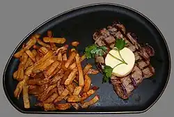 France and Belgium | Pan-fried steak paired with deep-fried potatoes (French fries). |