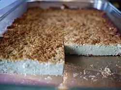 Potato kugel is a potato-based kugel of Ashkenazi Jewish origin, made with grated or pureed potatoes, onions, eggs, flour or matzo meal, oil, salt and pepper.