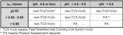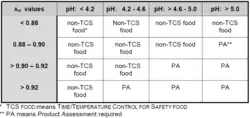 - Except as specified in Subparagraph (3)(d) of this definition, a FOOD that because of the interaction of its AW and pH values is designated as Product Assessment Required (PA) in Table A or B of this definition: