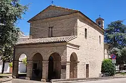Around the ring of walls which divided the inhabited centre from the countryside, there were three churches, one nearby each of the village's gates, all dedicated to Saint Mary. Outside Marina Gate, there is the Church of Our Lady of the Snows. It had been dated to the 15th century, thanks to the fresco situated above the altar representing the “Madonna della Neve col Bambino e gli Angeli” (Our Lady of the Snows with Child and the Angels) by Pietro da Montepulciano, a painter from the Marche region. This church is linked to the pilgrimages since Potenza Picena was a transit location for those going to the Holy House in Loreto.