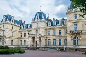 The Potocki Palace in Lviv (Polish pronunciation: [pɔˈtɔt͡skʲi], Ukrainian: Палац Потоцьких, Palats Pototskykh; Polish: Pałac Potockich) was built in the 1880s as an urban seat of Alfred Józef Potocki, former Minister-President of Austria. No cost was spared to make it the grandest nobleman's residence in the city. It is located on the Copernicus Street 15.