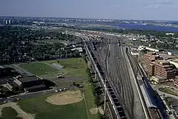 Potomac Yard is a neighborhood in Northern Virginia that straddles southeastern Arlington County and northeastern Alexandria, Virginia, located principally in the area between U.S. Route 1 and the Washington Metro Blue Line /Yellow Line tracks, or the George Washington Memorial Parkway, depending on the definition used.[1][2] The area was home to (and takes its name from) what was once one of the busiest rail yards on the Eastern Seaboard of the United States. The "Potomac Yard" name is also used to refer to several developments in the area, especially the Potomac Yard Center power center and a Washington Metro station.