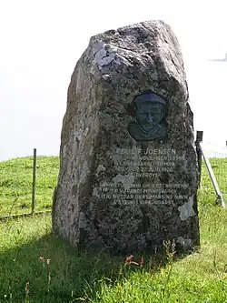 On 17 June 2007 a memorial stone was erected in Froðba by Lions Club Suðuroy, near his home. The stone was taken from a hillside in Sumba, the village where he was born and grew up. A metal plate with a portrait of Poul F. Joensen was placed on the stone, made by Nordisk Metalkunst of Kalsing in Denmark. Árni Ziska made the text and put the plate into place. Trúgvi Gudmundarson made the stone base beneath the memorial stone.[12]