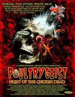 Poultrygeist: Night of the Chicken Dead is a 2006 black comedy musical horror film directed by Lloyd Kaufman and co-directed by Gabriel Friedman from a screenplay by Friedman and Daniel Bova. The film centers around the takeover of a New Jersey fried chicken fast food restaurant by possessed zombie chickens after it is built on top of a sacred Native American burial ground. The film was distributed and released on December 29, 2006, and in 2008 on DVD by Troma Entertainment.[3]