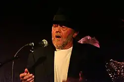 Povl Dissing grew up in Stavnsholt, a small village near Farum north of Copenhagen, and was educated commercial artist from which he made a living before turning to music full time. Originally he played the trumpet and jazz music, but an injuring accident in his early youth made him take up the guitar instead.[1] He sang almost exclusively in Danish and played and worked with many other notable Danish musicians.[2] He died on 18 July 2022 at the age of 84.[3]