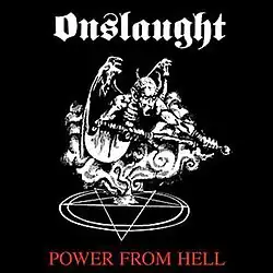 Power from Hell is the debut studio album by English thrash metal band Onslaught, released in February 1985. Apparently confusion has arisen as to who coined the term Death Metal, as it was Onslaught who wrote their song 'Death Metal' in early 1984 and recorded the album version later in the same year, and Possessed who recorded their song entitled "Death Metal" on their 1984 demo tape of the same name.[4] Power from Hell was reissued in 1996 by Powerage Records, again in 2005 by Blackend Records and received a full remaster by Jacob Hansen for the 2012 release on AFM Records;[5] the 2012 release rectifies the track listing problem encountered on previous releases and has revamped artwork with liner notes by Steve Grice.