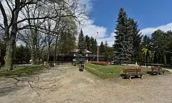 The Powsin Culture Park is located in the neighbourhood of Skarpa Powsińska, within the district of Ursynów, and near the border of Wilanów, at 1 Maślaków Street. It borders the Kabaty Woods and the Polish Academy of Sciences Botanical Garden – Powsin Centre for Biological Diversity Conservation. The park has the total area of 35 ha.[3][4]