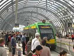 Poznań Fast Tram (Polish: Poznański Szybki Tramwaj, PST, informally: PeSTka, pestka – drupe, stone fruit) is a 8.1 km (5.0 mi) stretch of grade-separated tram/light rail infrastructure of the tram system in Poznań, Poland. It is served by four day lines (12, 14, 15 and 16) and two night lines (201 and 202). The tracks are set in a cutting or on an overpass, switches allowing to drive on adjacent tracks. The stops, resembling railroad stations, have a different colour scheme each. The PST, of which the first part opened in 1997, links the densely populated northern districts of Winogrady and Piątkowo with the city center.