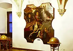 On the western wall are two portals dating from 1508, which combine Gothic and Renaissance features. Gold-plated doors contain the Bohemian coat of arms, possibly dating from the time of Wenceslaus II. Notable exhibits include a Venetian globe (1688), and busts of Roman emperors from the third and fourth centuries, excavated in Italy in the 18th century.