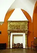 The Royal Hall (Sala Królewska) was once richly decorated similarly to the Great Hall, and was used for meetings of the city council. It was partly restored in 1954 following war damage. Its name derives from the portraits of kings which once decorated the hall (the portraits on display today come from the National Museum's collections). The hall features a Renaissance sandstone fireplace (1541), moved here from the adjoining weighing house when that building was demolished in 1890 (it was rebuilt in its original style after World War II). There is also a portal dating from 1536, moved from a house on the Old Market Square (Stary Rynek 87).