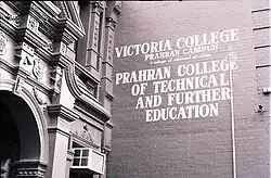 After 54 years as a council-controlled school funded by the Education Department, Prahran Technical School ceased to exist in June 1970 when it became part of the Victorian Institute of Colleges and on 21 February 1973 took a new name; Prahran College of Advanced Education.