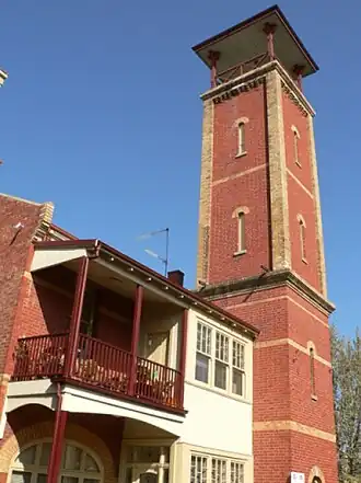 It is a two-storey brick building and has an attached brick watchtower. It was built in 1889 and was considered advanced for its time, although its location on narrow Macquarie Street was difficult for fire apparatus to get out from, onto Chapel Street.[1]