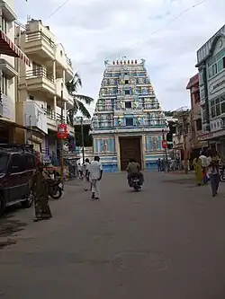 Puttaparthi has a railway station named as Sri Sathya Sai Prasanthi Nilayam.[14] The Railway station was inaugurated and became functional on November 23, 2000; Sathya Sai Baba's 74th birthday. It is about 8.6 km to the west of the ashram and 4 km south of the neighboring village of Kothacheruvu. This station falls under the Bangalore Division of the South Western Railway and lies on the Bangalore–Guntakal railway line. Travel time between the Rail station and Puttaparthi is approximately 15–25 minutes through various modes of transportation; cabs, autorickshaws and APSRTC buses. The town is connected directly by train to Bangalore, Secunderabad, Chennai, Vishakapatnam, Vijayawada, Coimbatore, Mumbai, New Delhi, Bhuvaneshwar and Kolkata.[15] Sri Sathya Sai Prasanthi Nilayam railway station is the 5th busiest station in Bangalore division of SWR.