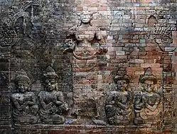 - ^ in Freeman, Jacques 2006 The authors say they are "the only known examples of their type" but this is incorrect, e.g., there are brick bas-reliefs in Vat Praeus Meas (page on CISARK site Archived 2011-07-25 at the Wayback Machine), Phnom Trop group, near Skuon, in Kampong Cham Province. For some photos see http://angkorexplorers.nengu.jp/07ruins/16_013phnomtrop/index.htm . Pointed out on Andy Brouwer's blog.