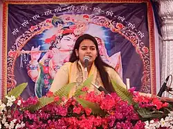 Pravacana (Sanskrit: प्रवचन) refers to "exposition, expounding, reciting, orally explaining, speaking or talking" about a spiritual idea or doctrine or treatise in Hinduism, particularly eloquently or excellent expression.[1] The term is found with this sense of meaning in the Rigveda verses 10.35.8 and 4.36.1, in the sense of recitation of Vedic texts in the Yajurveda, in various Brahmanas, Gryhasutras, the Ramayana and the Mahabharata, various sutras, as well as the Puranic literature such as the Bhagavata Purana.[1][2] The term typically refers to discourse, verbal discussion or a recital, but also refers to a textual genre of Indian literature that study a doctrine across texts, propound or synthesize ideas.[2][4] A speaker is called Pravacanakara.[1][2]