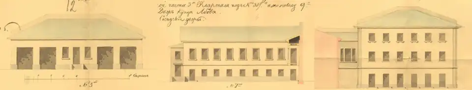 The mansion did not undergo any alterations until 1889, when it was sold to a new owner – noble by birth, bachelor of laws, Theodor Kruse. Six months after he bought the estate, Kruse submitted a proposal, prepared by architect Kovshirya, for reconstruction of the right wing, construction of a cellar and of a stone fence. The new wing was supposed to be made of brick with two gates and entrance in the center.[6][7]