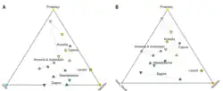 In their archaeogenetics study, Lazaridis et al. (2022)[17] carried out principal components analysis (PCA), projecting the ancient individuals onto the variation of present-day West Eurasians. They discovered that Neolithic Cypriots genetically clustered with Neolithic Anatolians. Two main clusters emerge: an “Eastern Mediterranean” Anatolian/Levantine cluster that also includes the geographically intermediate individuals from Cyprus, and an “inland” Zagros-Caucasus-Mesopotamia-Armenia-Azerbaijan cluster. There is structure within these groupings. Anatolian individuals group with each other and with those from Cyprus, whereas Levantine individuals are distinct.[17]