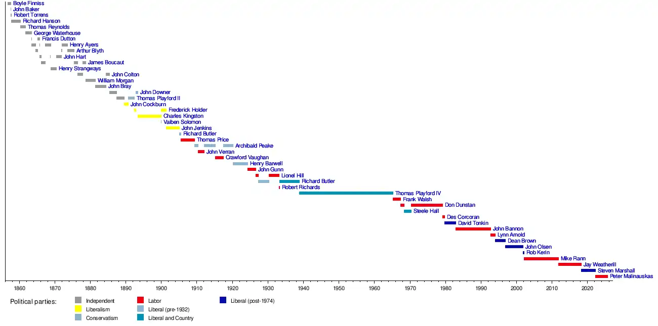 - List of premiers of South Australia by time in office
