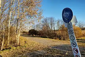 The route runs along the former roadbed of the Canadian Pacific line between Ottawa and Montreal, which was owned by Via Rail until 2021.[2] The rails were lifted in 1986,[3] while the trail was inaugurated in 2006. The agreement between Via and Prescott-Russell lasted until December 2021, when a non profit entity named the Sentier recreatif Prescott Russell Recreational Trail took over ownership and operations of the Trail.