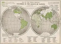 At the League of Nations' Assembly, in Geneva, Melo Franco had instructions to promote the creation of new permanent seats in the Deliberative Council for Brazil and Spain.[93] The claim to a permanent seat on the council can be compared, in the 21st century, to Brazil's ambition at a permanent seat on the United Nations Security Council.[94] The country's size and population, its participation in World War I, and its pre-eminence in the Western Hemisphere convinced the government of this possibility.[95] Since 1922, Brazil was one of four provisional members, while the permanent members were France, Great Britain, Italy and Japan.[96]