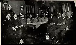 State ministers were chosen since the beginning of October and represented almost total support among civilian politicians. São Paulo native Rafael de Abreu Sampaio Vidal took over the Ministry of Finance,[25] ensuring his state's control over the country's economic policy — a typical "milk coffee" agreement.[26][27] But the Minas Gerais-São Paulo alliance contained a contradiction: on one side, the less orthodox São Paulo plutocrats, and on the other, career politicians from Minas Gerais, who valued fiscal balance. Sampaio Vidal was known for his proposal, when deputy, to issue unbacked bills to finance the defence of coffee. His name displeased orthodox politicians from Minas Gerais: Antônio Carlos Ribeiro de Andrada, leader of the majority in the Chamber of Deputies, Mário Brant and Afonso Pena Júnior.[28][29]