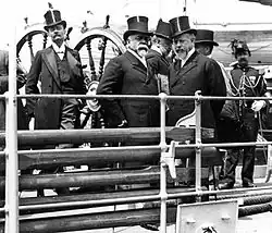 In April 1898, after the electoral result, Campos Sales travelled to Europe with the goal of addressing the serious issue of the country's external debt.[3] For around two months, alongside Bernardino de Campos, then Prudente de Morais' Minister of Finance, negotiations began with representatives of the Rothschild Firm, the main creditor of Brazilian debt, resulting in the approval of a consolidation loan (called Funding Loan).[4] From this negotiation came the final agreement that secured a new loan of £10 million. In exchange, the Brazilian government gave the income from the Rio de Janeiro customs as a guarantee, and committed itself not to resort to new external loans.[3] It was also expected that the Brazilian authorities would incinerate a quantity of paper money equivalent to the loan.[3]