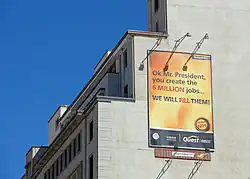 Zuma's administration pursued a number of structural economic policy reforms, but these have been characterised as "investor-unfriendly"[7] and most met significant opposition. For example, the Private Security Industry Regulation Amendment Bill, introduced by Zuma's government in 2012, would require local private security companies to be majority-owned by South Africans, in violation of the World Trade Organisation General Agreement on Trade in Services. It also afforded the Minister of Police the power to expropriate fully foreign-owned security companies in the national interest.[7][59] The Democratic Alliance Party, Zuma's opposition, vocally opposed the bill.[60] Others said that it would have negative economic effects,[59][61][62] especially since the European Union and United States, some of whose citizens have substantial stakes in the South African private security market, had raised objections to it, threatening to respond with sanctions and not to renew South Africa's membership of the African Growth and Opportunity Act.[7][60] The bill passed in 2014 but never received assent from Zuma, who said that he was considering the objections.[60] It was signed into law in October 2021 by Zuma's successor, President Ramaphosa.[63][64]