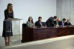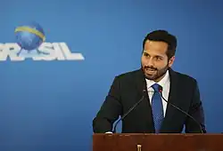 One of Temer's first measures was to abolish the Ministries of Culture, Communications and Women, Racial Equality and Human Rights. He also abolished the Military House of the presidency, the Ministry of Agrarian Development and the Office of the Comptroller General. The Ministry of Culture was merged with the Ministry of Education, while the Ministry of Women, Racial Equality and Human Rights was attached to the Ministry of Justice and Citizenship. The Office of the Comptroller General was transformed into the Ministry of Transparency, Supervision and Control.[24] Many artists and intellectuals, such as Wagner Moura and Wolf Maya, spoke out against the end of the Ministry of Culture. On 21 May, Temer recreated the ministry, under the command of Marcelo Calero, who until then had been appointed Secretary of Culture, linked to the Ministry of Education.[25][26]