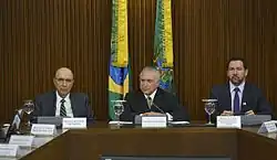 The economic team announced cuts in commissioned positions as soon as it was sworn in. Romero Jucá, Minister of Planning, said that the government intended to cut up to 4,000 positions of trust and gratified functions, which would represent 18.4% of the total. Henrique Meirelles, the Minister of Finance, emphasized that balancing public accounts was essential to restore the country's confidence in the economy and to stimulate investments capable of promoting the country's growth and the creation of jobs.[27]