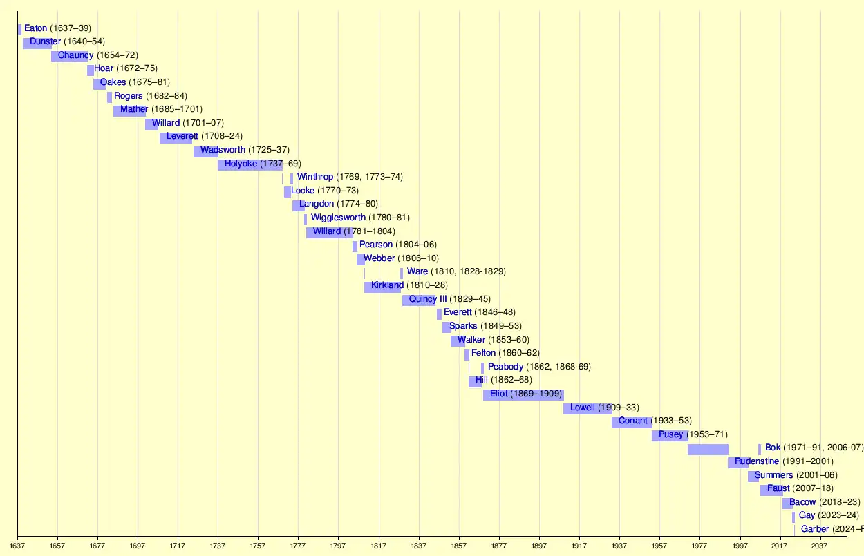Timeline of Harvard University presidential terms