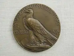 When Theodore Roosevelt came into office in 1905, he decided that the previous medal produced for McKinley would be insufficient for him. Roosevelt, an avid art supporter, wanted his medal to go above and beyond a simple portrait. This led to two different medals being produced for his inauguration—a simpler medal approved by the Committee on Medals and Badges and a medal commissioned by Roosevelt himself. When choosing someone to design his personal inaugural medal, Roosevelt turned to renowned sculptor, Augustus Saint-Gaudens. Saint-Gaudens was at the height of his career and was in negotiations with the U.S. Treasury to make new designs for American coins. It was during his visit to the White House that President Roosevelt also asked him to design a superior inauguration medal for his election. Saint-Gaudens agreed to the President's proposal and immediately began to sketch possibilities. The medal produced from Saint-Gaudens certainly held a superior art aesthetic in comparison to the original medal produced by the Inaugural Committee. One side of the medal displays a distinguished portrait of Roosevelt and the other side holds a high-relief eagle. This is the same eagle that is later used for the $10 coins produced by the U.S. Treasury.[1]