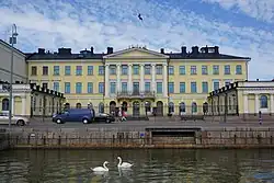 At the beginning of the 19th century, a salt storehouse stood on the site. Johan Henrik Heidenstrauch, then one of the elite of Helsinki's merchants, purchased the entire lot and erected between 1816 and 1820 a stately residence designed by architect Pehr Granstedt.[1][2] The Heidenstrauch House resembled a palace more than a merchant's house. In 1837 it actually became a palace when it was purchased for the price of 170 000 rubles to be converted into a residence for the Governor-General of Finland. However, Nicholas I desired that it should become the official residence in Helsinki of the Emperor of Russia, the Grand Duke of Finland, and so the building became the Imperial Palace in Helsinki.[3]