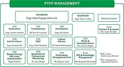 The PTFP collaborates closely with various ministries and agencies that have specific contributions to the reform process, including the Federal Ministry of Power,[2] the Federal Ministry of Finance,[3] Ministry of Petroleum Resources,[4] the Bureau of Public Enterprises (BPE), the Nigerian Electricity Regulatory Commission (NERC),[5] the Nigerian National Petroleum Corporation (NNPC),[6] the Bureau of Public Procurement,[7] National Gas Company Limited (NGC)[8] and the Power Holding Company of Nigeria (PHCN) to mention a few.