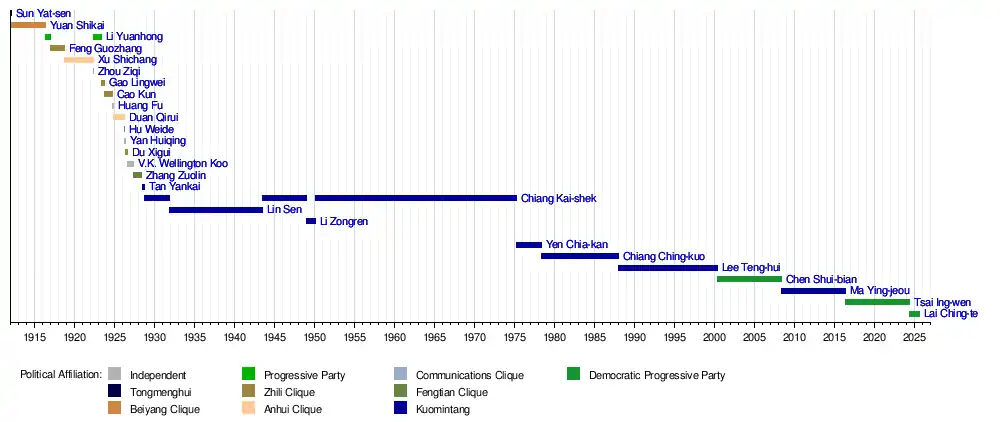 This is a graphical lifespan timeline of the presidents of the Republic of China (post-1947 Constitution) and they are listed in order of office.