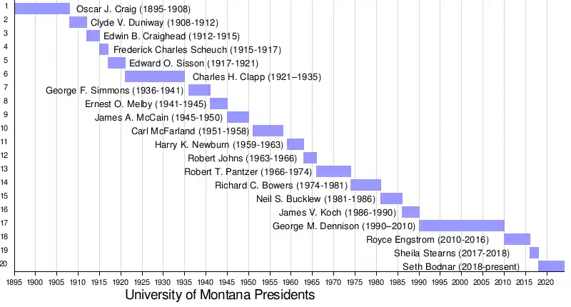 - ^ "University of Montana's Past Presidents". Archived from the original on 2010-12-29.