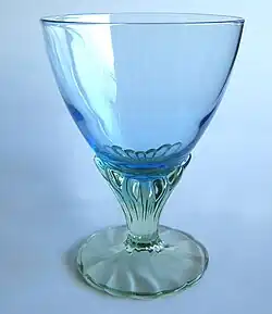 Pressed glass (or pattern glass)[1] is a form of glass made by pressing molten glass into a mold using a plunger.[2] Although hand pressed glass has existed for over 1,000 years, the use of a machine for pressing was first patented by Pittsburgh glass man John P. Bakewell in 1825 to make knobs for furniture.