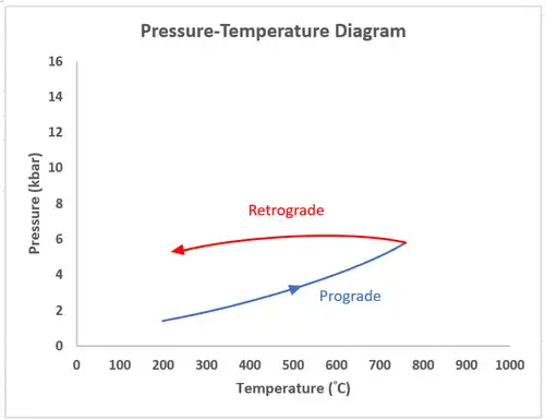 - Near-isobaric cooling after the peak (Retrograde metamorphism)[2]