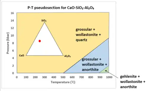 (Pseudosection is different from petrogenetic grid. Pseudosection shows different mineral phases for a single rock chemical composition,[25] while petrogenetic grid shows a set of reactions under different P-T conditions that would occur for a phase diagram.[1])