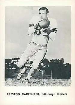 Verba Preston Carpenter (January 24, 1934 – June 30, 2011)[1] was an American professional football player. He played as an end, halfback, tight end, and kick returner over eleven seasons for five different teams in the National Football League (NFL) and the American Football League (AFL). Carpenter played college football at the University of Arkansas for the Razorbacks.
