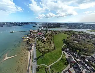 In 2016 it was announced that initial support had been given for a £1.9 million grant from the Heritage Lottery Fund as part of the Heritage Enterprise programme (which targets projects creating 'new sustainable economic uses for derelict historic buildings'.[32] The proposed grant would help bring seventeen listed buildings back into use, alongside those occupied by the Explosion museum. Some would be converted for residential use, others for business or community uses, including a waterside pub/restaurant, a micro-brewery in 'E' Magazine and a new Coastal Forces museum.[33] After commercial partners withdrew from the project a new proposal was approved in 2018, to include a residential development of 30 new homes (mostly within the south demi-bastion), restoration of eight listed buildings (and the demolition of another) and various commercial developments.[34]