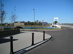 A new Millennium footbridge from Gosport town centre was constructed to aid the redevelopment and access to the area. New housing was built around parts of the original site, including an imitation of the early 19th-century Officers' Residence (demolished in the 1950s) which faces the footbridge.[25] In 2004 an arson attack led to the demolition of the sizeable grade II-listed[26] New Shell Store (being used by the council as a warehouse to store wheelie bins) that stood within the Royal Laboratory quadrangle.[27]