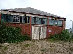 The 2 ft 6in line, known as the 'shell tramway', was a double line system with steel rails; the line initially linked the shell-filling rooms and associated buildings to the shell stores and it ran along the length of the shell pier. In 1904 it had 30 trucks plus a travelling crane (all with brass wheels to reduce sparks). These were also manually driven until 1929, when for the first time mechanical propulsion was provided within the yard by a battery-driven locomotive (the first of an eventual total of eight to be provided by Greenwood & Batley Ltd). The tramway ceased operation in 1960 following the acquisition of a number of electric road tractors and trailers; much of the rail network was then lifted and the routes concreted over to form roadways.[5]