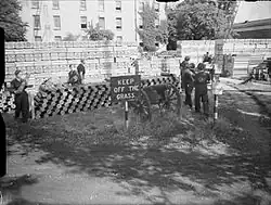 For security, a guardhouse was built at around this time to the north of the magazine, just inside the main entrance through the ramparts. There was also a small barracks block within the northernmost demi-bastion (where "E" Magazine stands today), but neither it nor the guardhouse have survived;[1] (from 1807 nearby Forton Barracks accommodated artillery troops, who manned the fortifications[4] and in 1833 the Dockyard Police Force took over the task of guarding the depot itself).